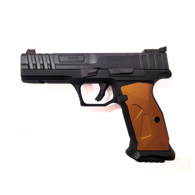Pistolet HOG Sport RA9 został zaprojektowany z myślą o wymagających strzelcach sportowych. Jego szkielet wykonany z aluminium 7075, co gwarantuje wytrzymałość i lekkość. Ergonomiczny, personalizowany poprzez zmianę aluminiowych nakładek uchwyt zapewniają pewny i komfortowy chwyt. Dzięki wyważeniu, regulowanej metalowej szczerbince oraz światłowodowej muszce, pistolet oferuje wyjątkową celność. Konstrukcja pistoletu jest łatwa do rozłożenia.